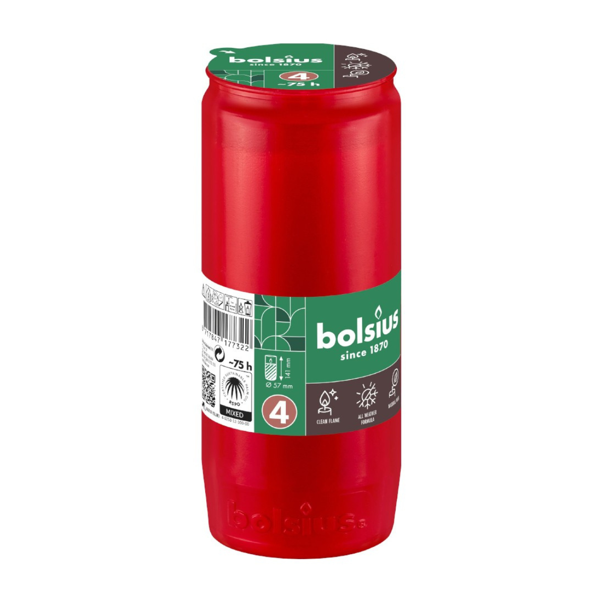Candela Rezerva Bolsius Nr.5, Rosu, timp de ardere 75 ore