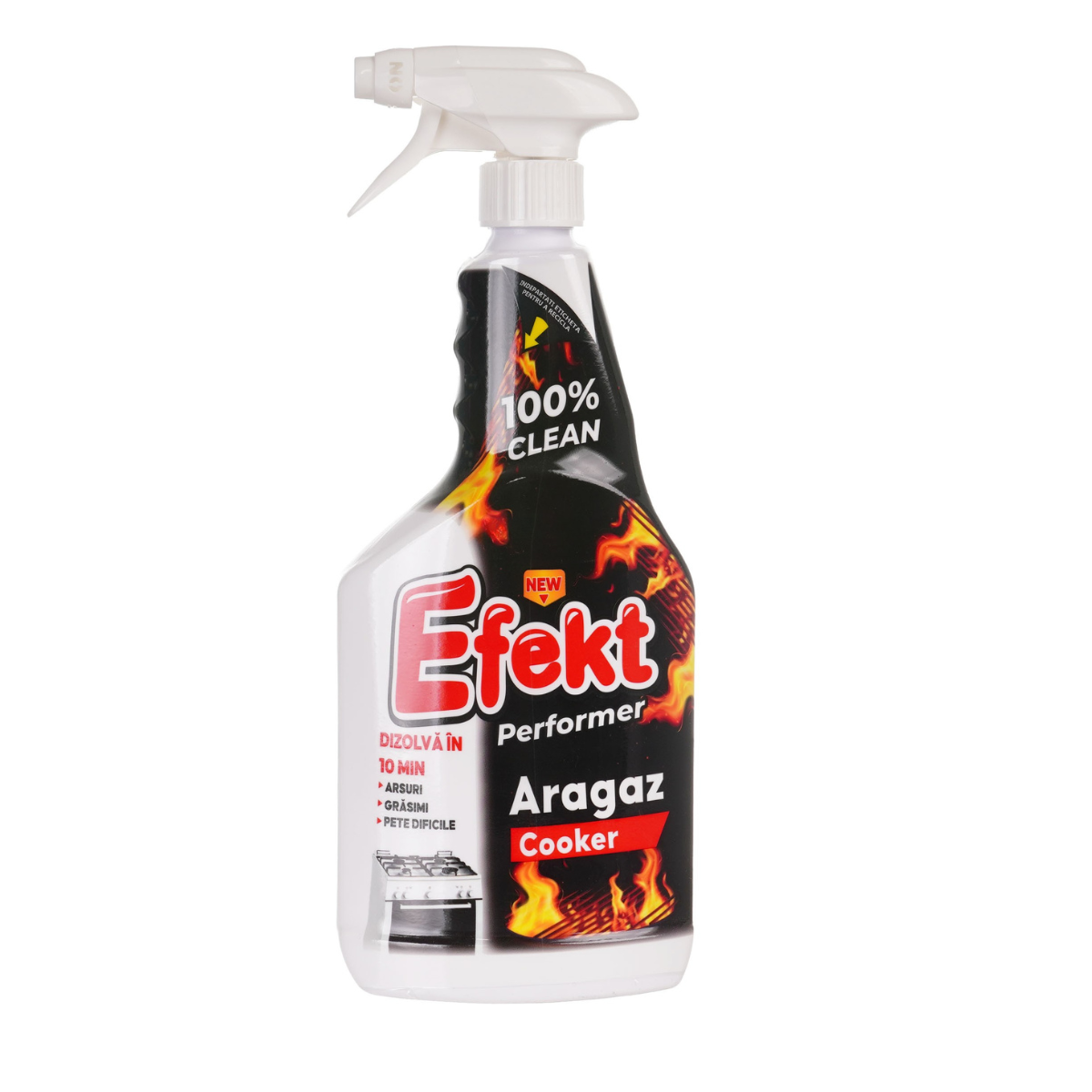 Efekt profesional pentru aragaz dizolva in numai 10 minute grasimea si alimentele arse, lasand suprafetele stralucitor de curate. Degresantul Efekt profesional de aragaz se foloseste prin pulverizare direct pe suprafata in cauza si se lasa sa actioneze maxim 10 minute dupa care se clateste cu apa si se sterge cu o carpa uscata. De asemenea, Efekt profesional degresant aragaz nu se va folosi la curatarea cuptoarelor cu microunde, a suprafetelor de aluminiu, linoleum sau suprafete vopsite, suprafete de vitroceramica, marmura sau lemn.