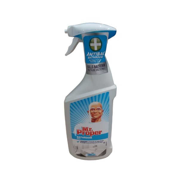 Produsul igienizant cu pulverizare Mr Proper indeparteaza depunerile de calcar, reziduurile de sapun si urmele de apa pentru igiena profunda. Ideal pentru utilizarea regulata pentru curatenia din baie pentru a asigura zilnic suprafete curate si lucioase. Produsul cu pulverizare pentru baie Mr Proper este ideal pentru suprafetele verticale, nu doar pentru o curatare profunda, ci si un luciu de durata. Formula sa curata delicat suprafetele, astfel incat poate fi folosit in fiecare zi pentru a curata o varietate de spatii expuse la apa – de la robinete la faianta. A se vedea pachetul pentru instructiuni complete de utilizare.