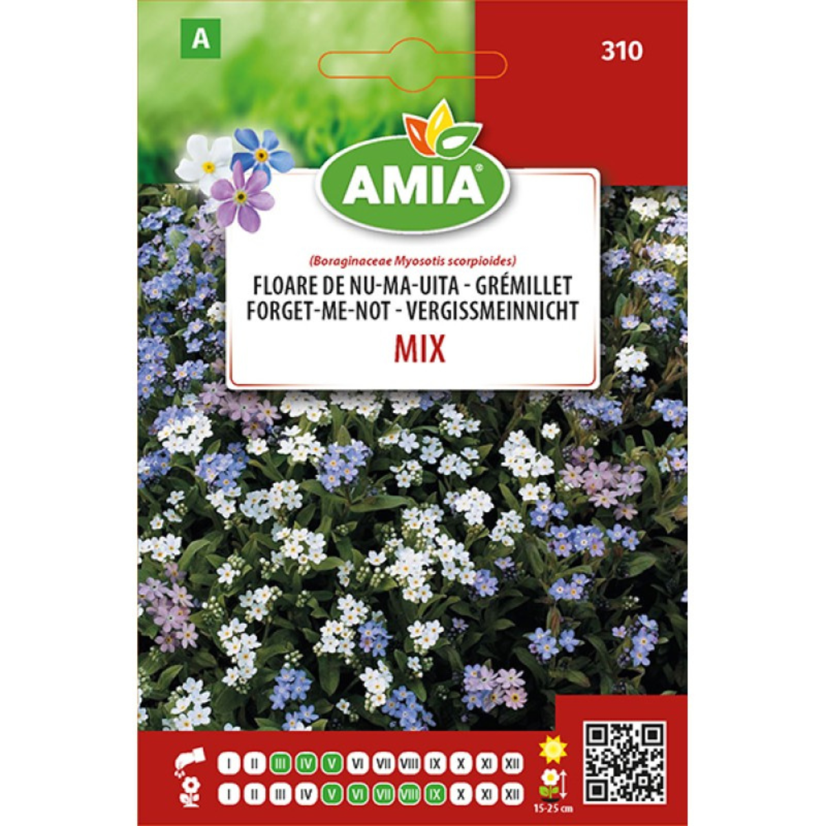 Mix de culori: include florile tipice de Nu-ma-uita in nuante de albastru (intens, deschis), roz si alb, adesea cu un centru galben.