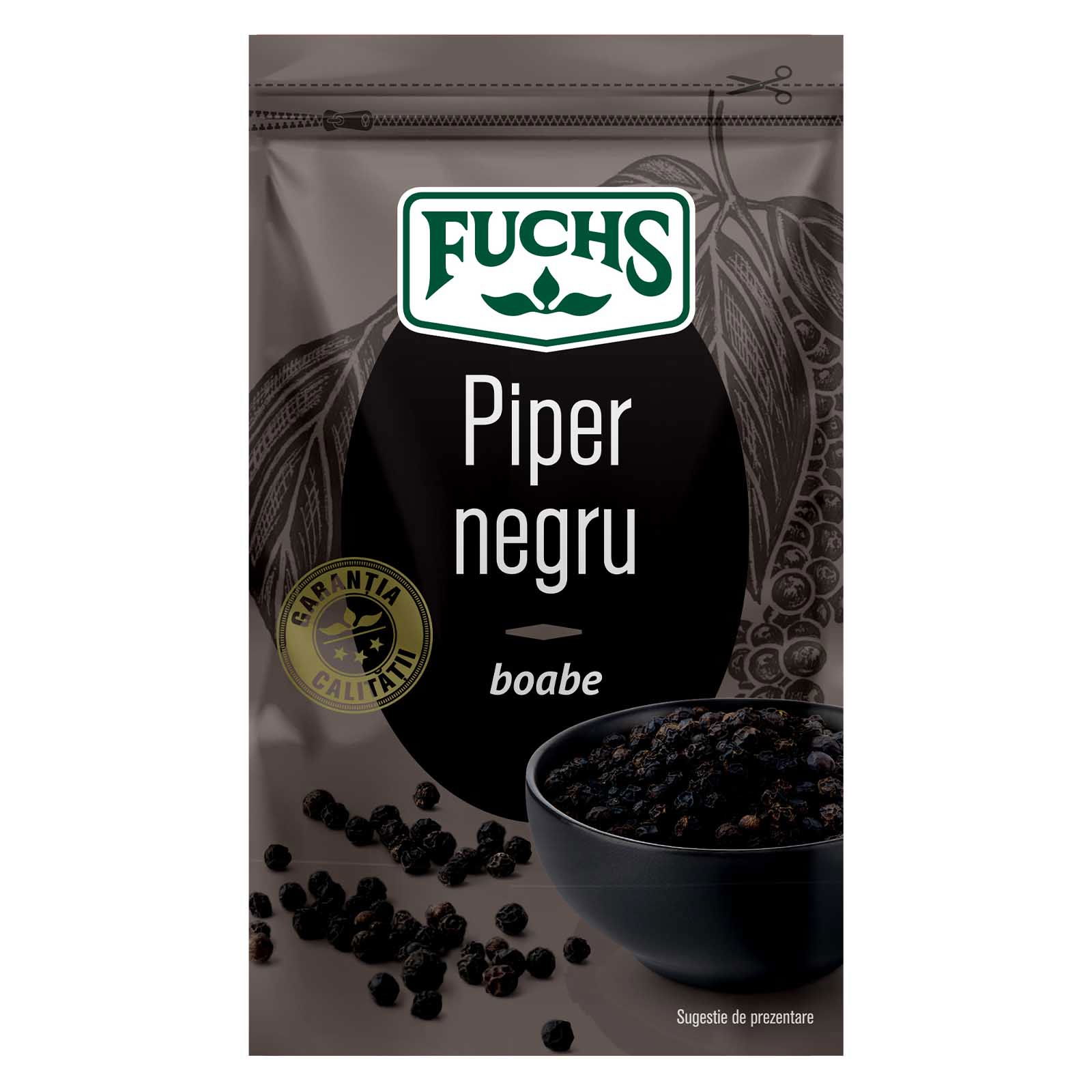 Piper negru boabe, Fuchs, 20 grame Utilizare:Cu o aroma puternica si un gust iute, piperul negru boabe este un condiment versatil, perfect pentru a da profunzime gustului in preparate gatite, dar si in muraturi sau marinate. Ingrediente: piper negru boabe Poate contine urme de telina, susan, mustar. Cantitate neta: 20 grame