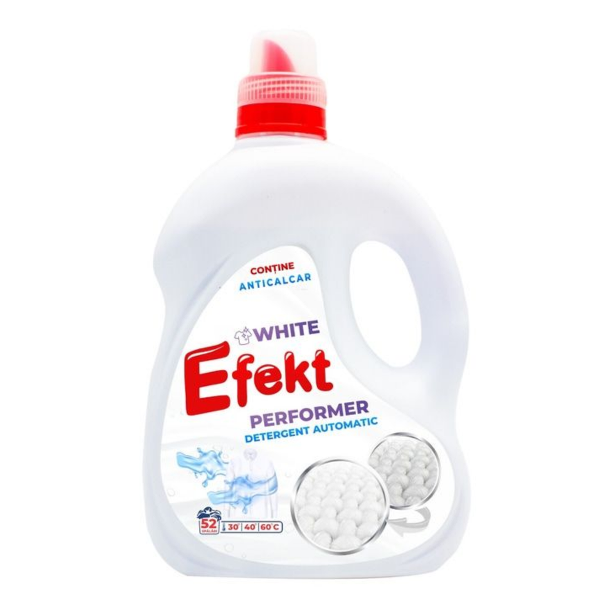 Obtine rezultate remarcabile cu Efekt Performer Detergent Lichid pentru Rufe Albe! Bucura-te de rufe albe impecabile si protejate in fiecare spalare, alegand detergentul de incredere Efekt Performer.
