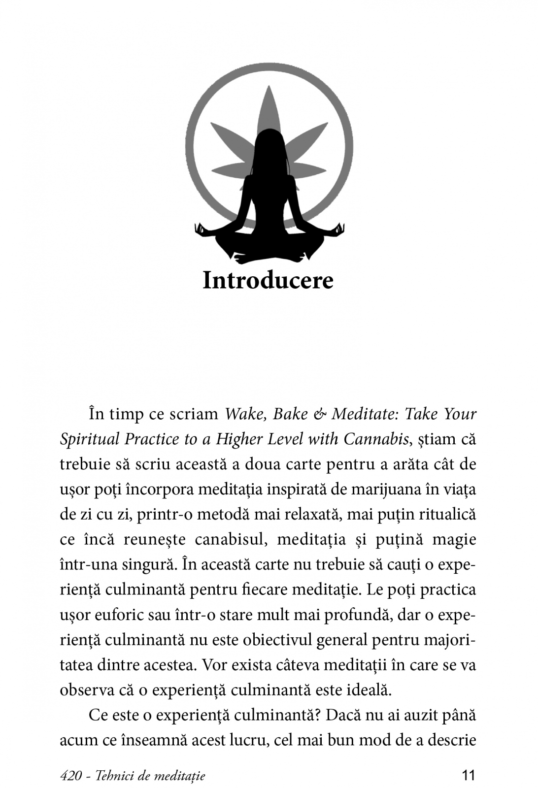 Invata cum sa lucrezi cu energia pietrelor si a uleiurilor esentiale, exploreaza retete pentru a-ti antrena simtul gustului si asculta melodii si sunete naturale pe care le recomanda autoarea Kerri Connor pentru sedintele tale. Pe langa meditatiile zilnice cu canabis, aceasta carte ofera meditatii acordate cu fazele lunii, sabaturi, cele cinci ele-mente, chakre si aure. Cu sfaturi pentru a ajunge la experiente de varf si integrarea tuturor simturilor in prac!tica ta, aceasta carte te sprijina in cautarea unei vieti de constientizare si pace.