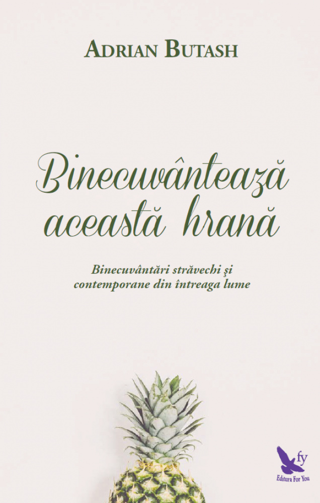 Cartea Binecuvanteaza aceasta hrana reuneste 150 de rugaciuni la vremea mesei, selectate din cele mai cunoscute religii ale lumii, din traditii milenare si din opera unor mari poeti si ganditori – de la Shakespeare pana la capetenia Tecumseh, din ortodoxia copta pana la traditia poporului tamil, de la campiile amerindienilor pana in Pakistan. Fiecare rugaciune este introdusa in contextul cultural si istoric. Cartea contine si doua rugaciuni in limbajul american al semnelor, precum si rugaciunea „Binecuvanteaza aceasta hrana“ exprimata in 19 limbi. Rezultatul este o formula unica pentru exprimarea recunostintei la fiecare masa – o reteta speciala de hrana pentru trup si suflet.