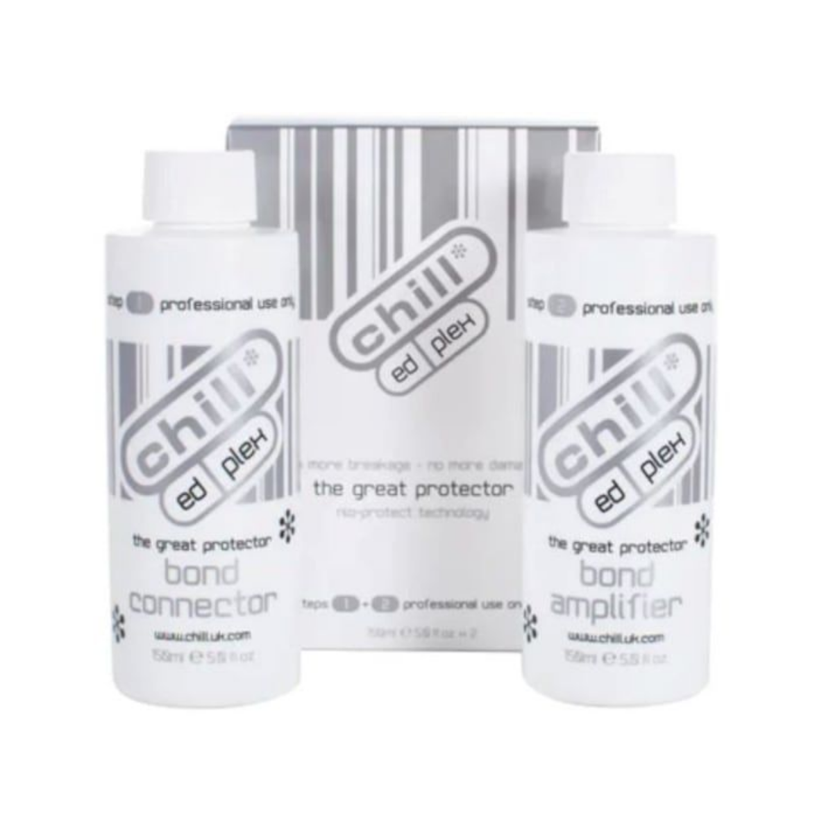 Pasul 2 (Amplificator Chill Ed Plex Bond): legaturi incrucisate si extinde numarul de noi legaturi pe suprafata parului creat cu conectorul Bond. Ofera putere, protectie, umiditate si nutritie, sigileaza cuticula parului si face parul mai neted decat inainte. Folosit in timpul oricarui tratament chimic. Pachetul contine instructiuni de utilizare a produsului pentru tratarea culorii (colorare directa, colorare permanenta), tratamentul cu keratina si netezirea chimica, precum si pentru indepartarea culorii. Chill Ed este un brand englezesc binecunoscut, fabricat in Elvetia.