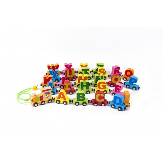 Trenuletul este robust si cei mici vor fi incantati sa il plimbe, fiecare vagon avand cate o litera mare, frumos colorata.O jucarie educativa – locomotiva si vagoane cu toate literele alfabetului.