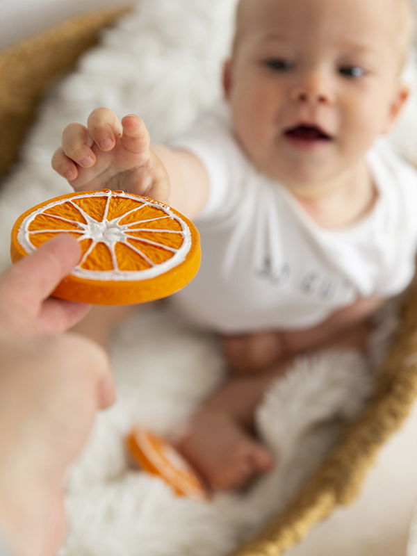Clementino cel portocaliu are grija de sanatatea celui mic, ajutandu-l sa se familiarizeze cu fructele de la o varsta cat mai frageda. Clementino este o jucarie de dentitie realizata din cauciuc natural, netratat chimic, vopsita cu pigmenti naturali, fiind croita astfel incat sa nu-ti faci griji pentru sanatatea bebelusului.