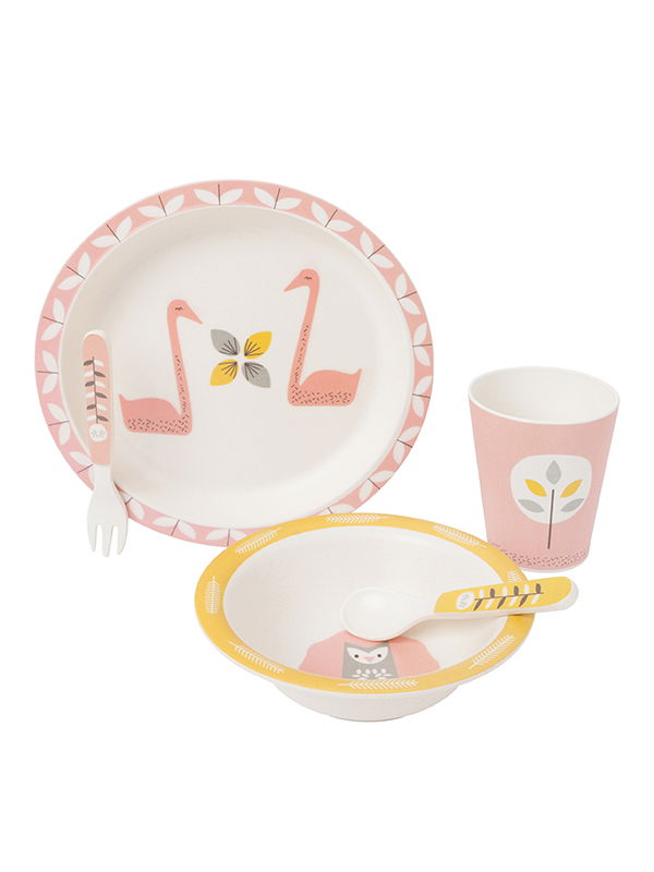 Set 5 piese pentru masa bebelusi, din bambus, model Swan