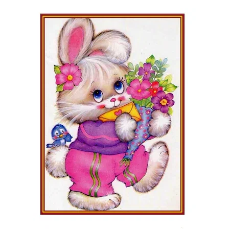 - Panza de bumbac cu un desen simplu delimitat pe zone de mai multe linii si fixat pe o rama din lemn. Fiecare zona este marcata cu numere ce corespund unei anumite culori;