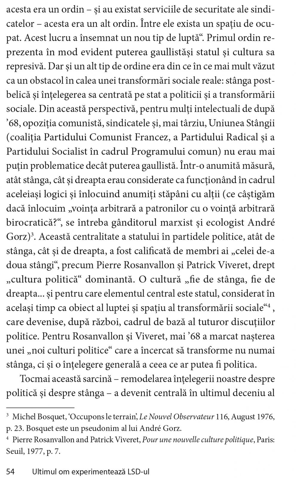 O parte istorie intelectuala, o parte teorie critica, The Last Man Takes LSD schimba felul in care gandim atat despre Michel Foucault, cat si despre politicile moderne progresiste. Intr-o zi fatidica din mai 1975, Foucault a consumat LSD in sudul Desertului California. In insemnarile reproduse aici, el descrie experienta ca fiind una dintre cele mai importante din viata lui, una care l-a condus la refacerea completa a cartii The History of Sexuality. Acea calatorie l-a ajutat pe Foucault sa-si redirectioneze gandirea si a avut un impact masiv in viata intelectuala a perioadei. A reinterpretat miscarile sociale din mai 1968 si s-a repozitionat din punct de vedere politic in Franta, adoptand tendinte antitotalitare si devenind un critic al bunastarii.
