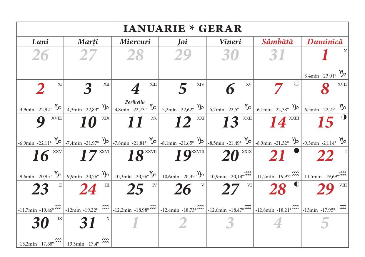 * Calendarul dezvaluie modul in care se poate citi ora de pe un ceas solar chiar si in timpul noptii, pe baza Lunii, fazele lunare fiind in esenta un produs al luminii solare imprumutate de satelitul nostru natural;