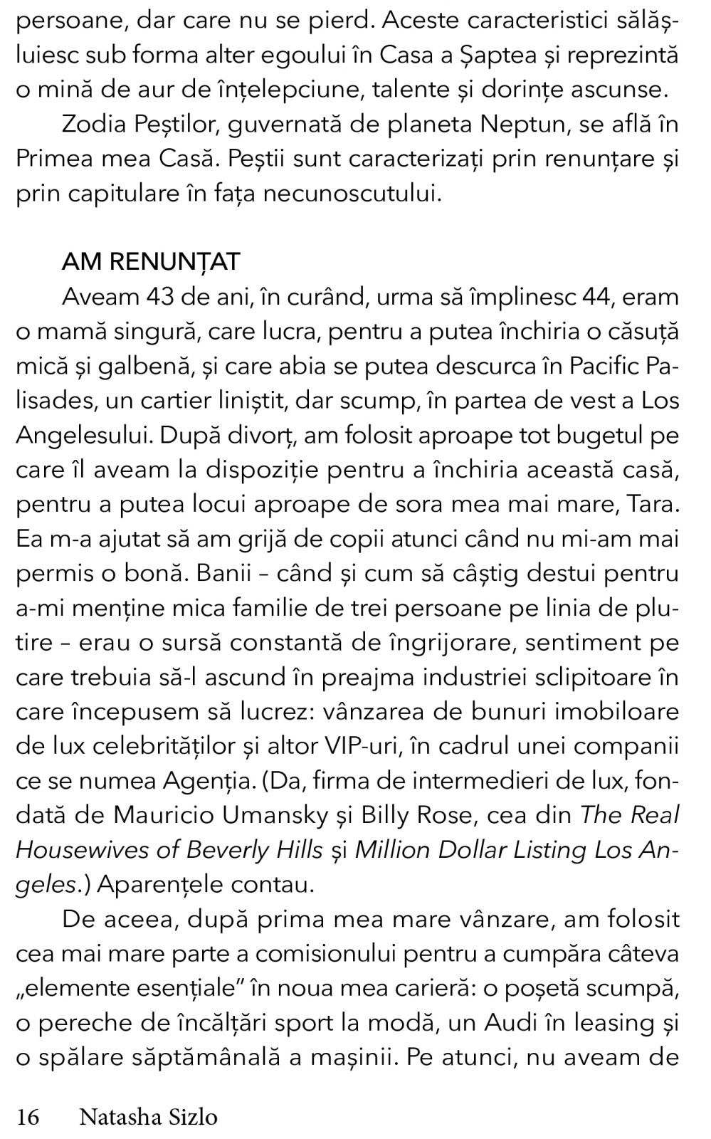 NATASHA SIZLO a scris pentru Variety, Cosmopolitan, Detour si Shape, printre altele. Ziua este agent imobiliar la The Agency.