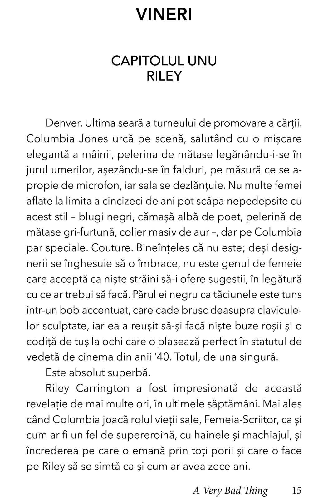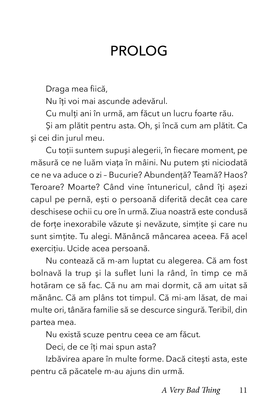 Pentru fanii thrillerelor psihologice si domestice precum cele scrise de Karin Slaughter, Lucy Foley, Paula Hawkins, Gillian Flynn si bineinteles Ellison insasi, A VERY BAD THING este o lectura de neratat care te prinde de la inceput pana la final.