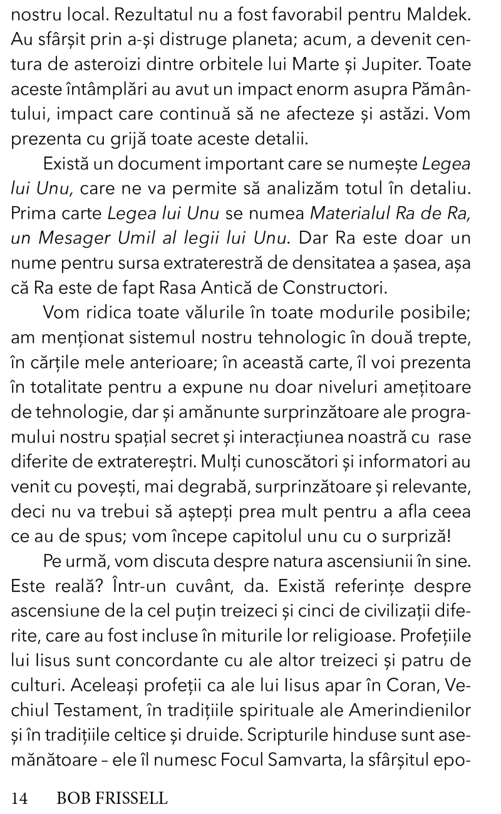 „Recomand aceasta carte oricui este interesat de transformarea psihologica si evolutia umanitatii catre un nivel mai inalt de existenta – si chiar transcendenta fizica spre una caracterizata de constiinta cosmica – ca ne va aduce un nou paradis si un nou Pamant pentru cei care s-au pregatit pentru marile schimbari.”− ROBERT D.MORGNINGSTAR, ANALIST PENTRU INFORMATII CIVILE SI ZIARIST DE INVESTIGATIE