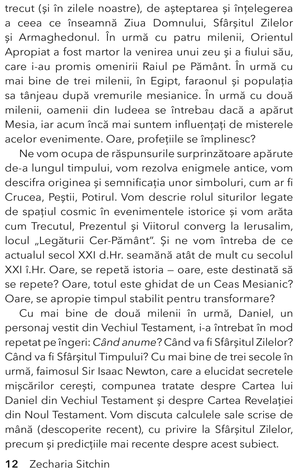 Intr-o epoca in care fanatismul religios si ciocnirea civilizatiilor ridica spectrul unui Armaghedon nuclear, Zecharia Sitchin sfarama perceptiile si foloseste istoria pentru a revela ceea ce urmeaza la Sfarsitul Zilelor.