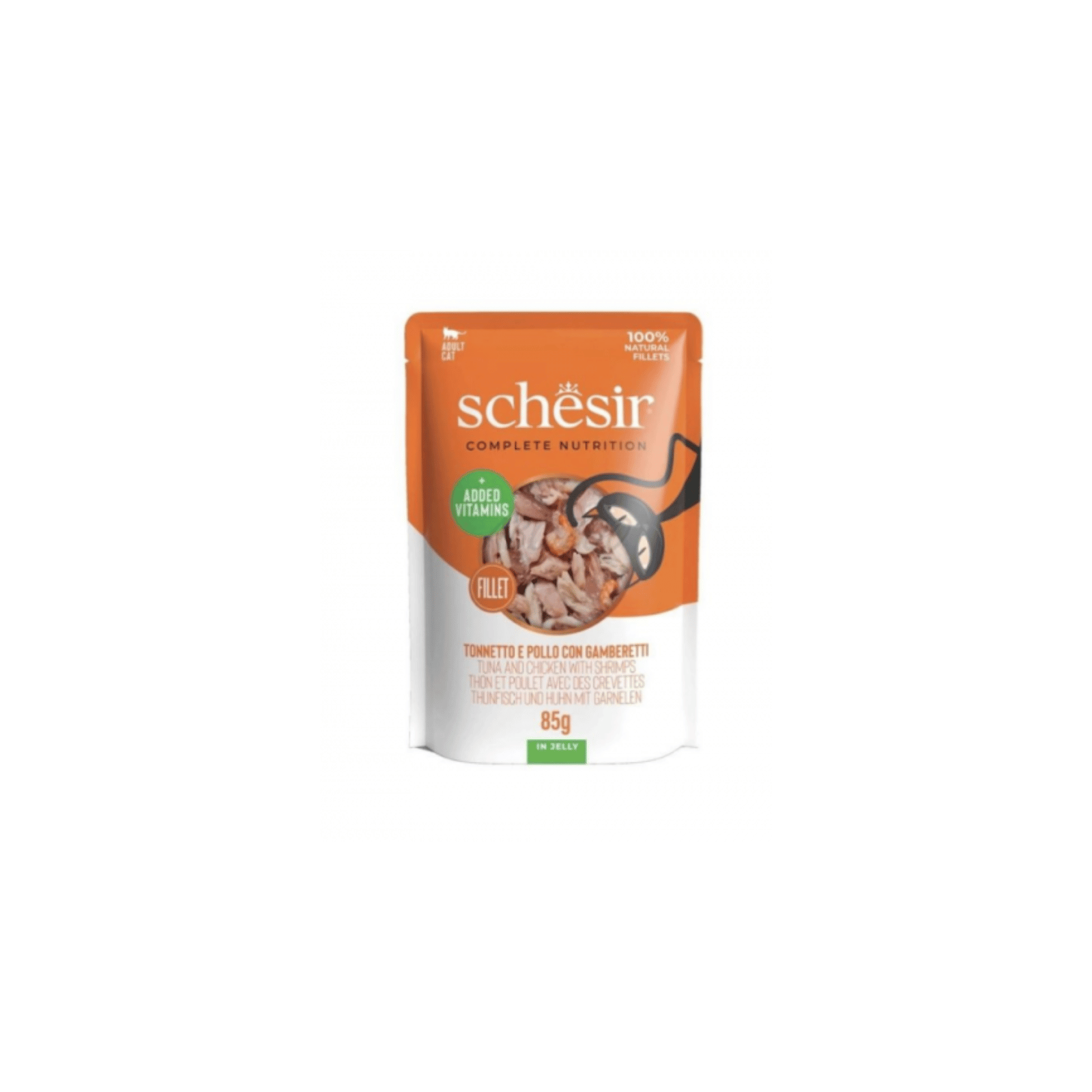 1 x SCHESIR CAT TON ȘI FILET DE PUI CU CREVEȚI 85 G