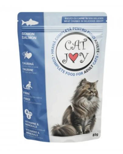 Hrana umeda pentru pisici adulte Cat Joy cu somon in sos, 85 gr