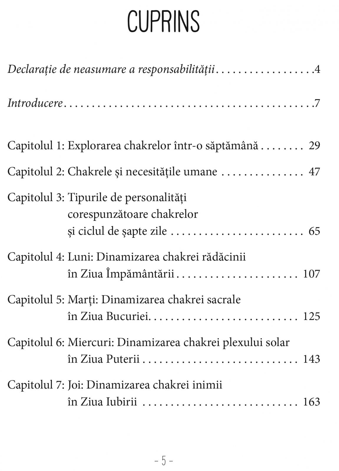 Veniti alaturi de Shai Tubali intr-o calatorie ampla si multicolora, pe taramul intelepciunii chakrelor. El va impartaseste meditatii, afirmatii, exercitii, exemple de jurnal si vizualizari, toate acestea fiind menite sa va trezeasca pe deplin trupul si min-tea. Explorati chakrele individual, precum si in operarea lor sinergica. Descoperiti care este tipul vostru de personalitate asociata cu chakrele si care sunt practicile de putere ale fiecarei zile. Aceasta carte iluminatoare va invata cum sa va vindecati singuri si cum sa acordati in fiecare saptamana o atentie sporita domeniilor de viata neglijate, calauzindu-va spre o viata implinita si sacra.