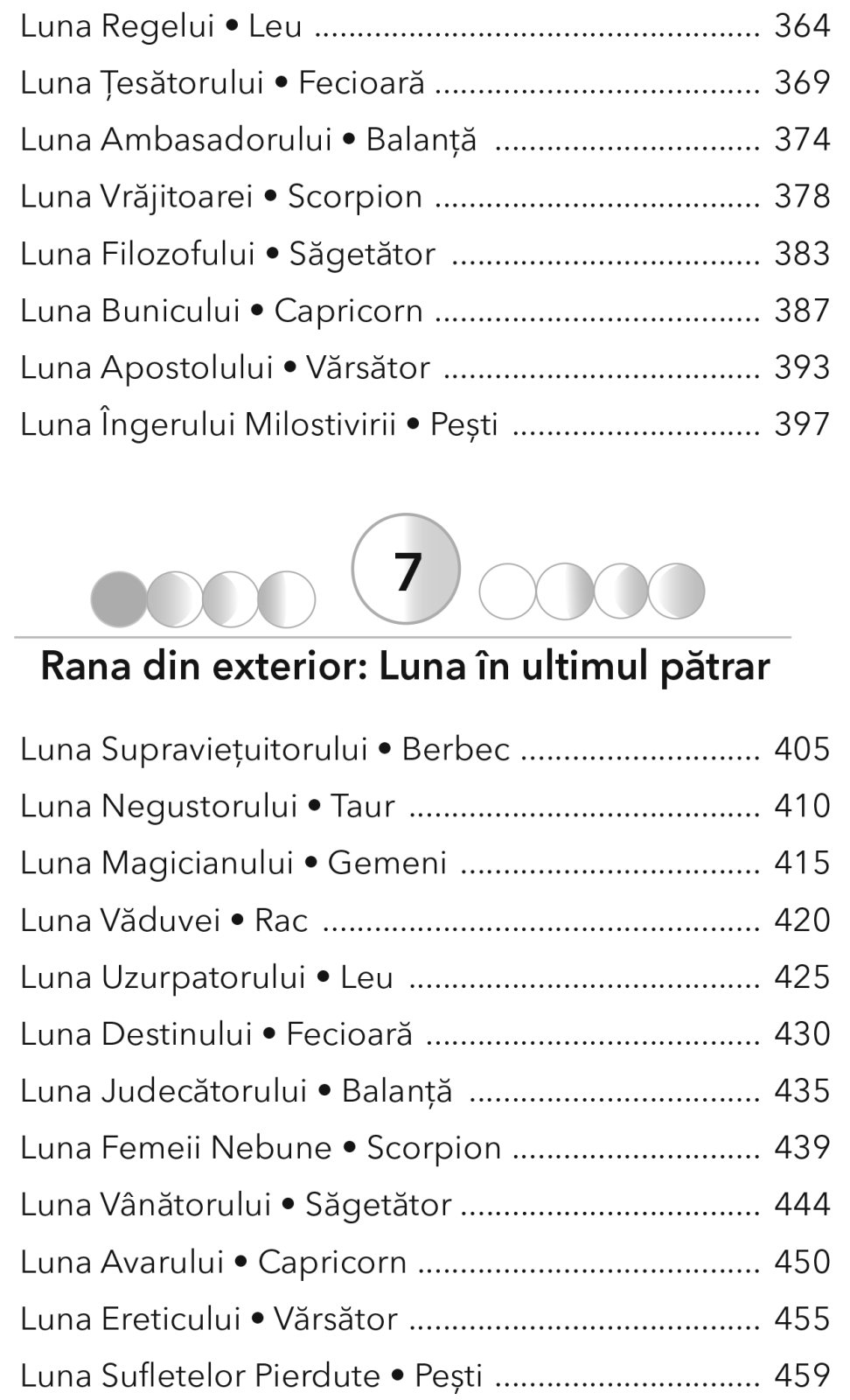 • Descrie trasaturile pozitive si negative care definesc caracterul fiecareia dintre cele 96 de combinatii ale fazelor Lunii/semnelor zodiacale ale Lunii.