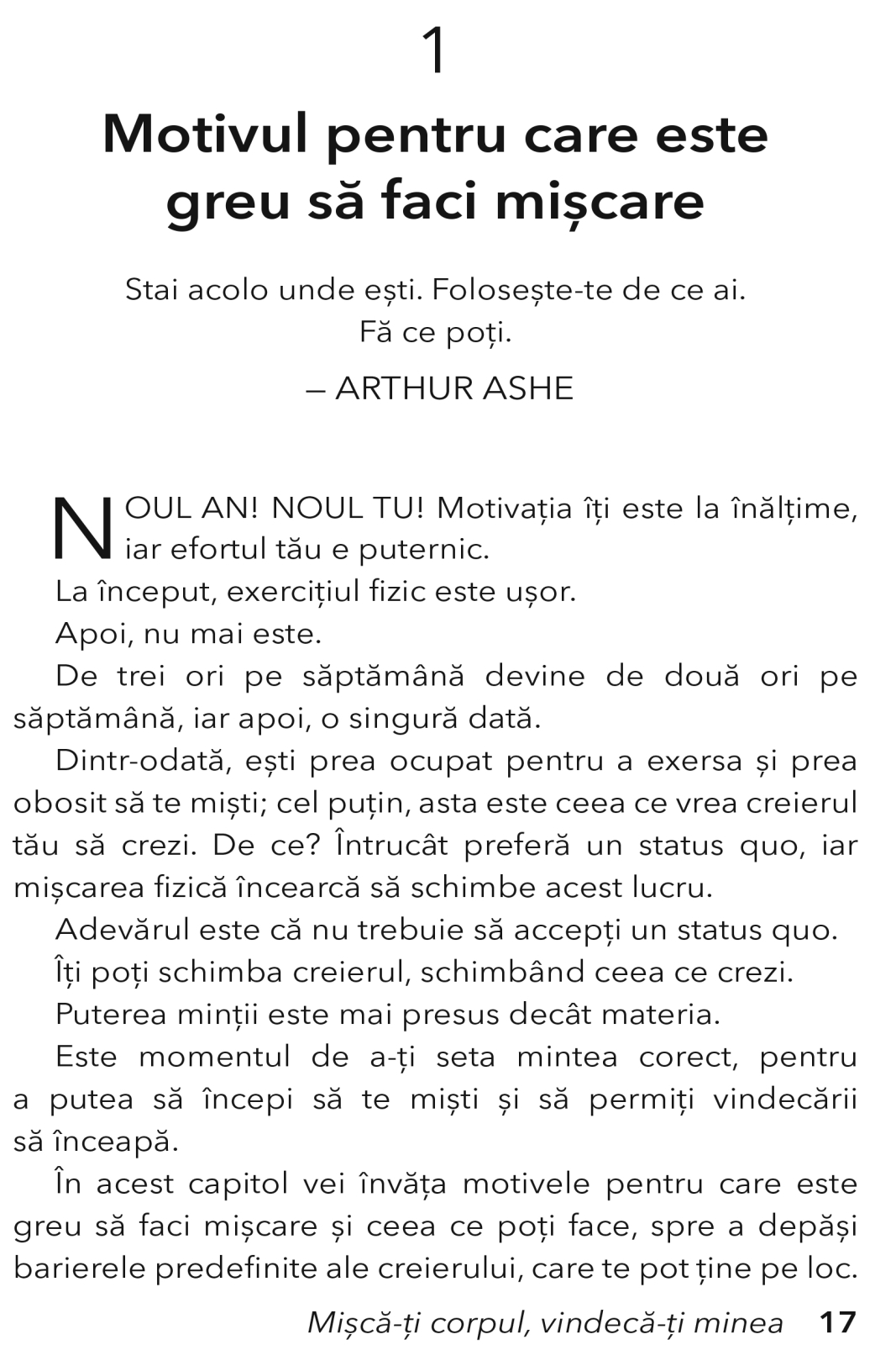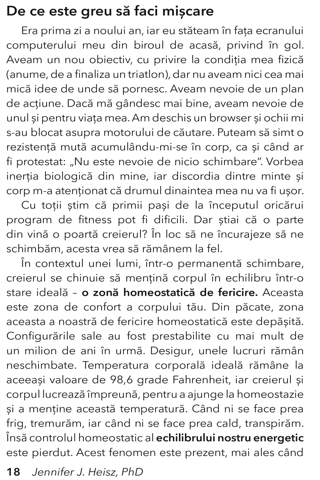 „Dr. Heisz imbina viziunea sa unica de cercetatoare de top in domeniul exercitiilor fizice si al sanatatii mentale cu experientele sale personale pentru a oferi o perspectiva accesibila, captivanta si informativa asupra modului in care miscarea poate vindeca mintea.”— MARTIN GIBALA, Profesor PhD de kinesiologie si autorul bestsellerului Exercitiul de un minut: stiinta arata o cale mai desteapta, rapida si scurta de a-ti imbunatati conditia fizica