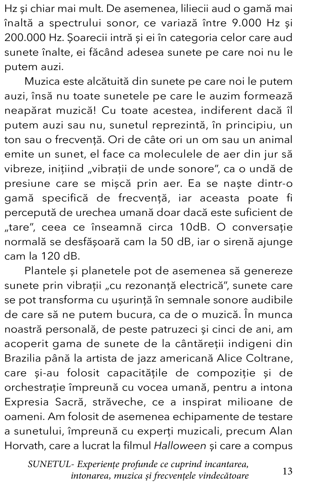 „Cand ajungem sa cunoastem mai indeaproape, realizam ca sunetul reprezinta contactul nostru primar cu lumea din jurul nostru – un contact bogat si cu multe fatete, dincolo de cele oferite de vedere, gust, sau atingere. Aceasta carte ne va conecta in moduri care ne vor uimi si ne vor inspira pentru tot restul vietilor noastre. ”— Ervin Laszlo, autor al cartii Stiinta si Campul Akashic si al The Survival Imperative