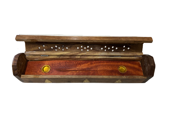 Suportul de lemn Cufar este accesoriul ideal pentru a arde betisoarele parfumate intr-un mod facil si sigur! Suportul de lemn este accesoriul necesar daca utilizati betisoare parfumate pentru aromaterapie sau meditatie. Suportul este creat din lemn, cu insertii metalice decorative, ajuta la colectarea cenusii rezultate in urma arderii betisoarelor parfumate sau conurilor parfumate.