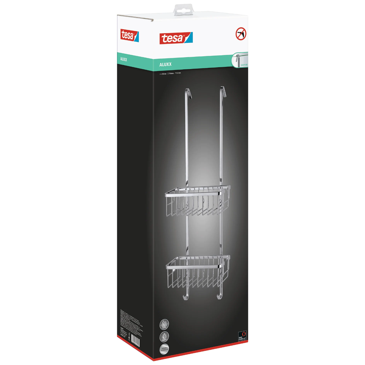 Este solutia ideala pentru oricine nu doreste sa gaureasca sau sa lipeasca accesoriile de baie. Cu cele doua cosuri ale sale, raftul ofera mult spatiu pentru depozitarea gelurilor de dus, sampoanelor si a altor articole esentiale pentru dus. Fabricat din aluminiu cromat lucios, este garantat antirugina, rezistent la apa si are margini rotunjite. Instalare usoara si curata, fara gaurire. Dimensiuni: 750 mm x 250 mm x 163 mm.
